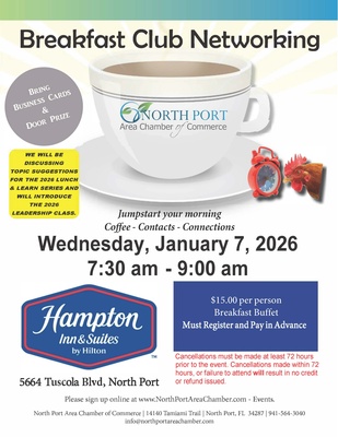 Hampton Inn & Suites North Port will be the host of the January Breakfast Club Networking.